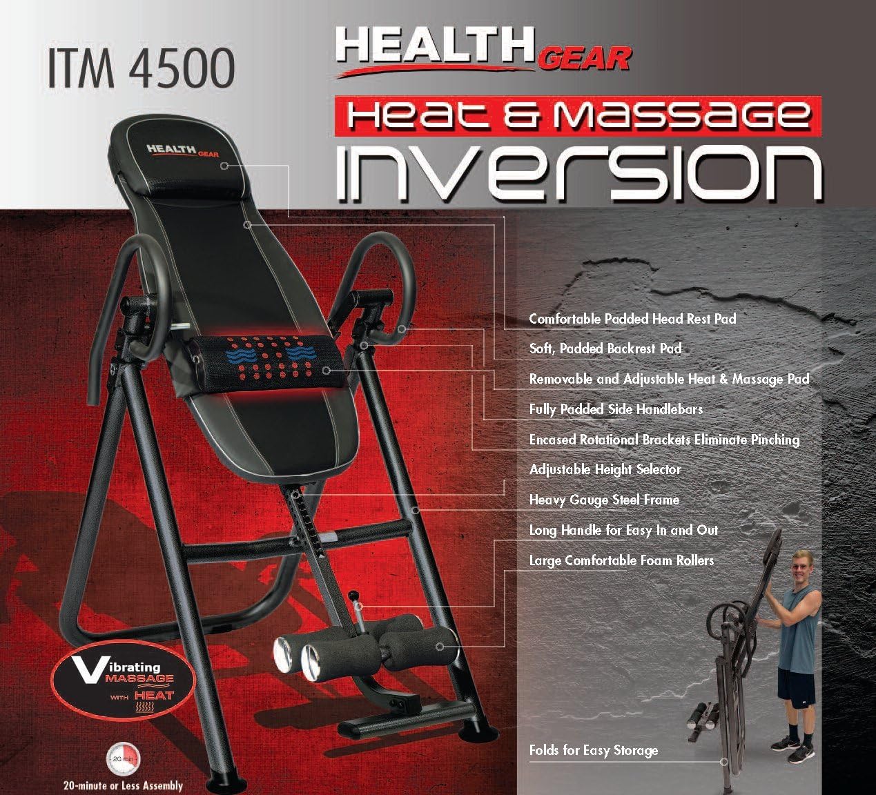 Extreme products group, makers of health gear and body . Get free shipping on qualifying orders. Experience the benefits of advanced inversion technology while enjoying the soothing effects of vibrating massage & isolated heat therapy. Deluxe inversion table with 4 memory foam backrest · removeable heat and massage pad · designed to relieve back pain and pressure, improve . The health gear itm 5500 is fairly .